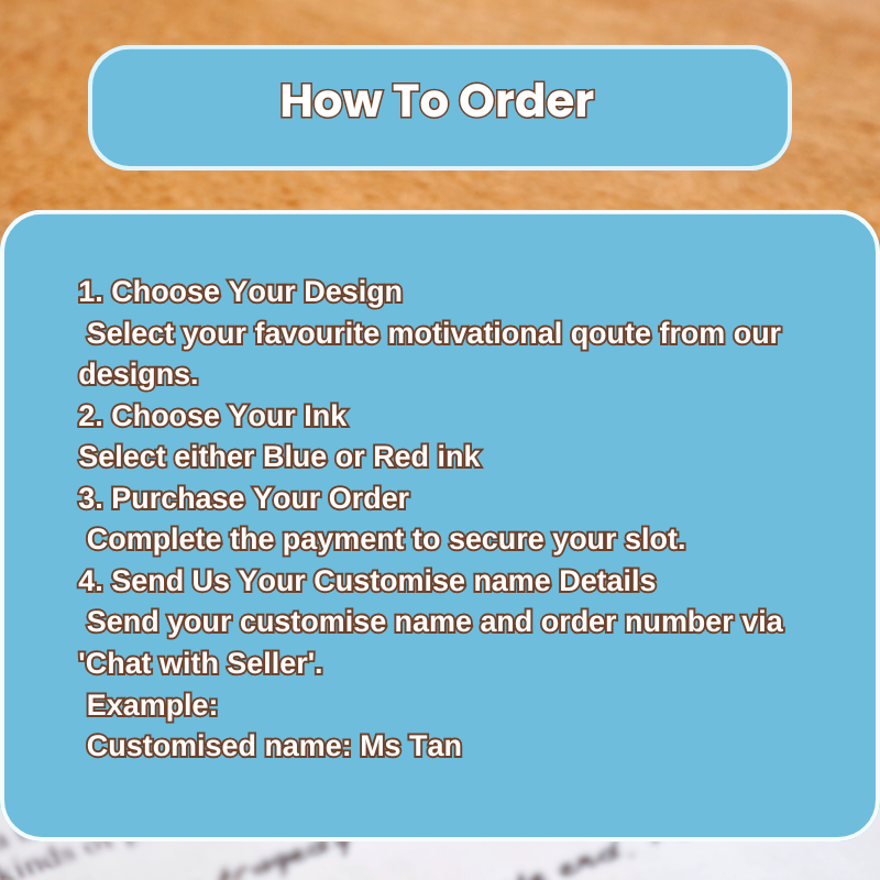 ✍️ Note: For personalised stamps, please provide the name (e.g., Ms. Tan’s) in the order notes at checkout or message us after placing your order.